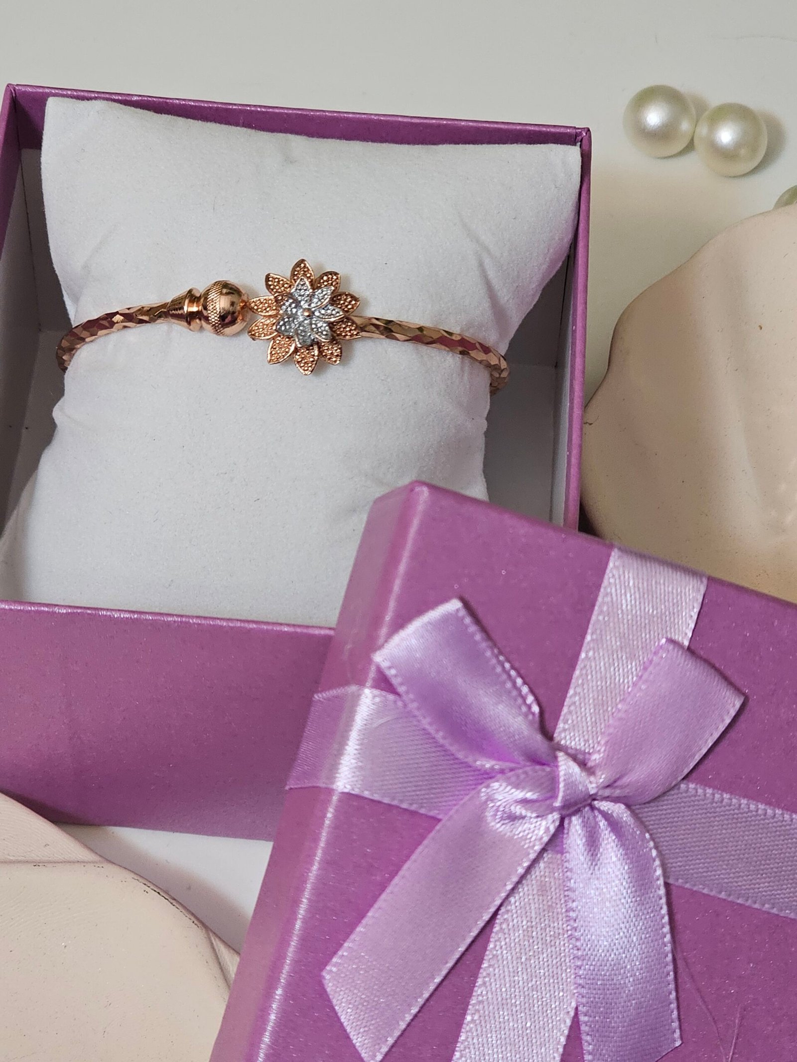 A delicate bracelet featuring a single flower design that adds a touch of elegance and charm to your everyday style.