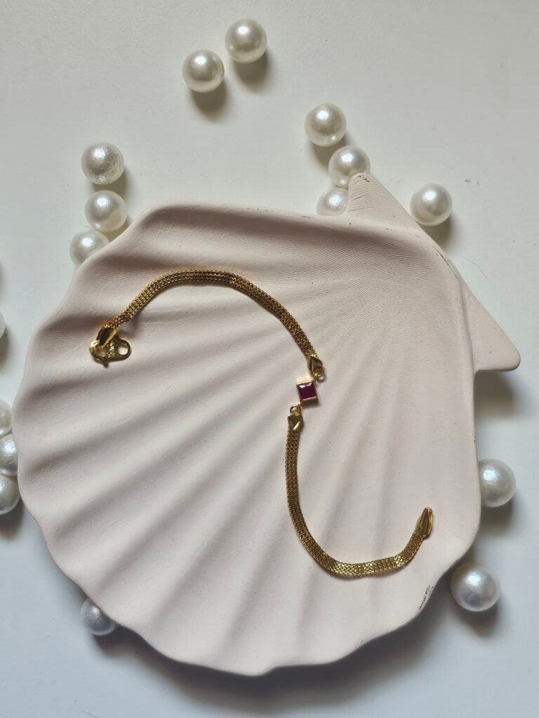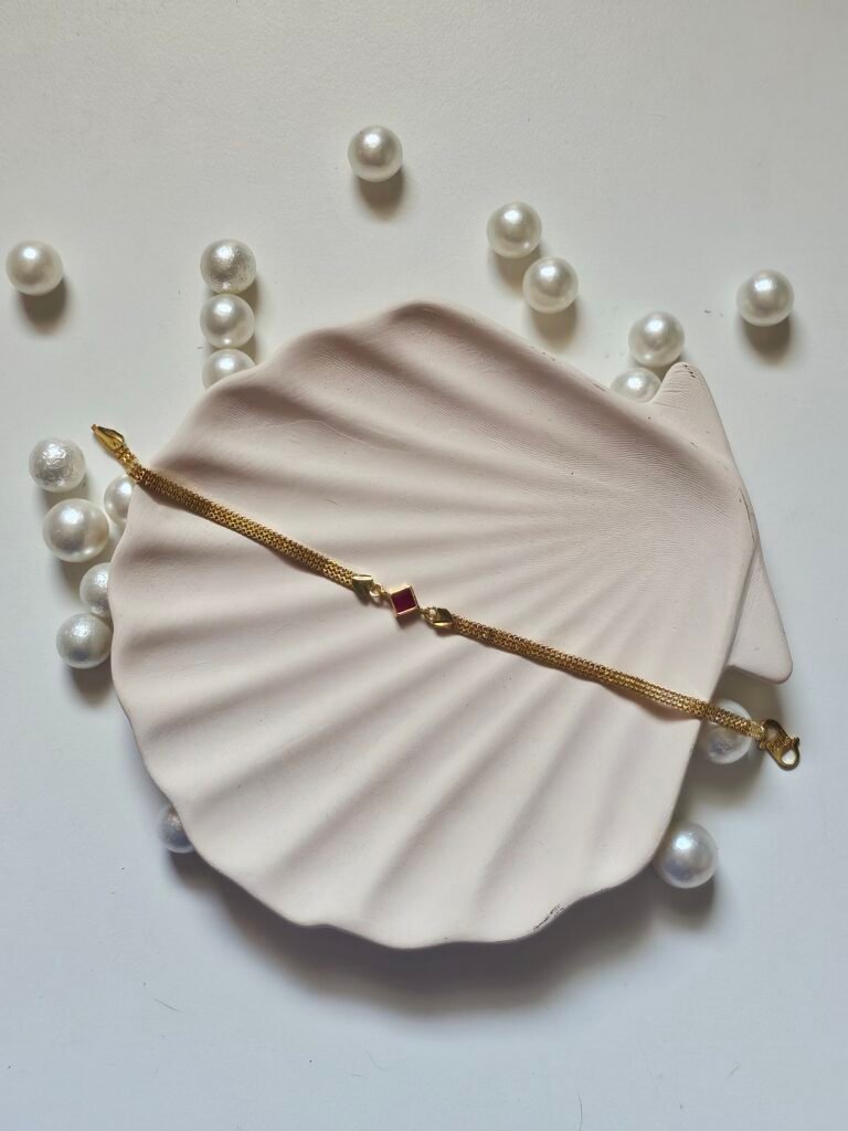 A beautiful bracelet featuring a rich maroon stone set in an elegant design. Perfect for adding a bold and classy touch to your look.