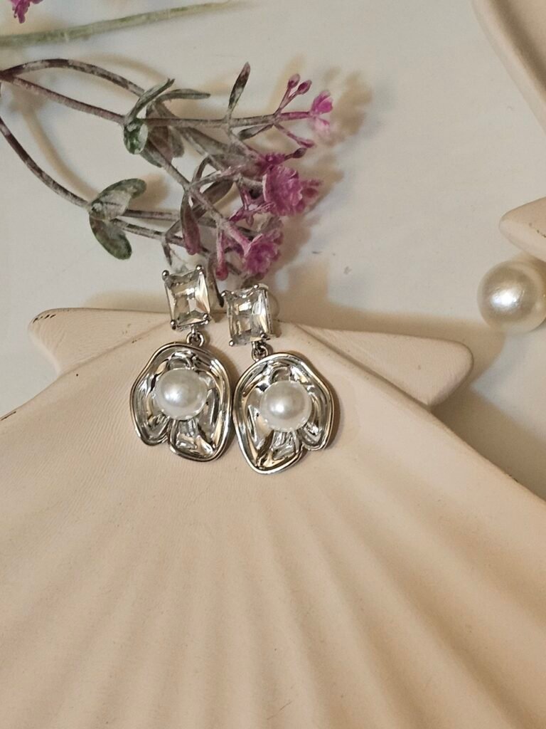 Be the first to review “Power pearl silver Hoop Earrings”