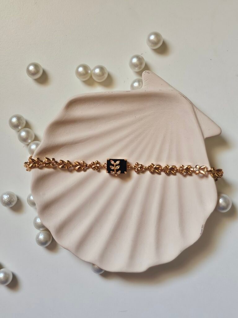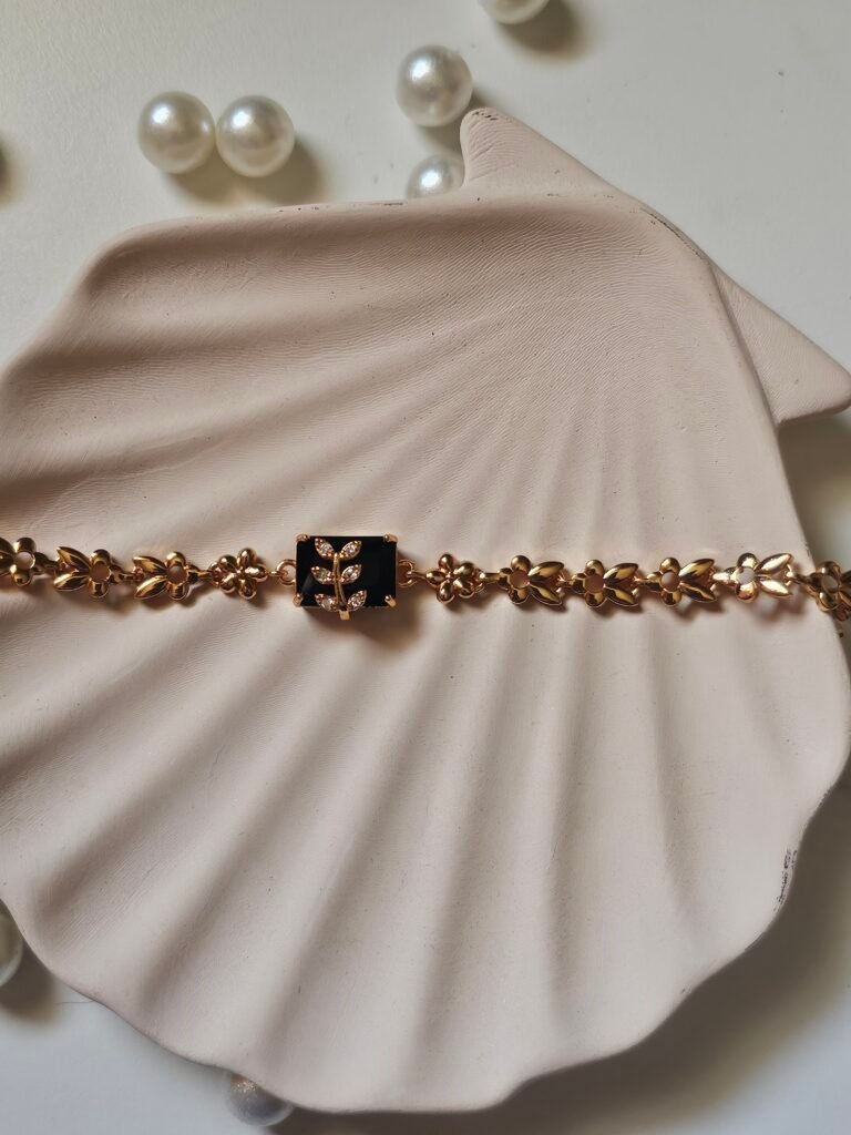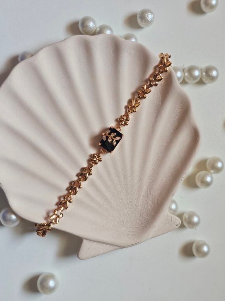 A sleek bracelet featuring a single elegant black stone set on a stylish chain. Designed with a bold and minimal look for a classy and modern style.